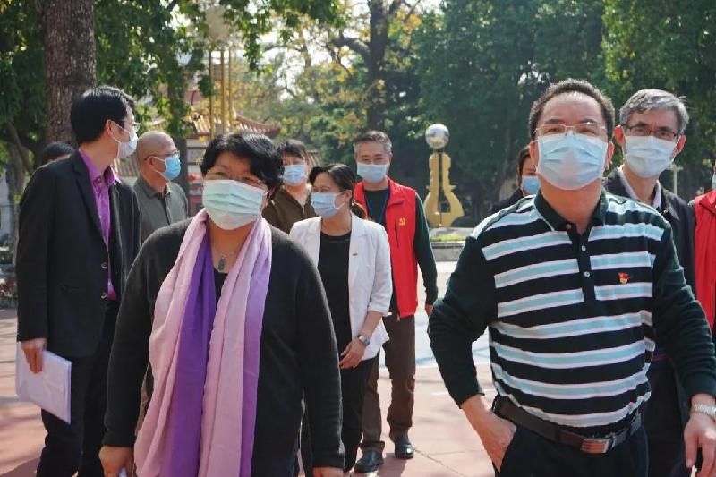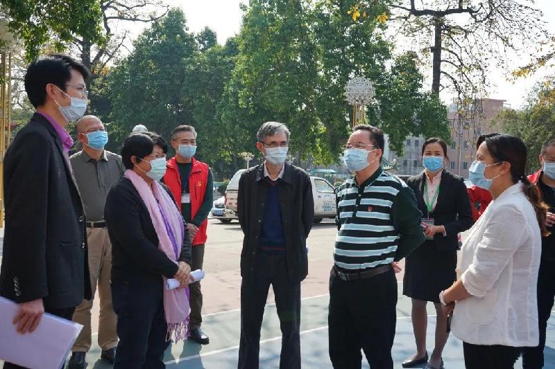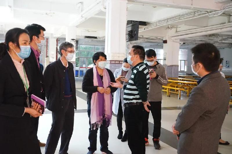 順德區(qū)副區(qū)長、容桂街道黨工委書記劉國興(右3)等領(lǐng)導(dǎo)到容山中學(xué)檢查疫情防控工作
