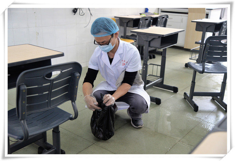 九(2)班教室內(nèi),曾勇和老師為25名學(xué)生講解化學(xué)知識(shí)。突然,楊同學(xué)因身體不適而嘔吐。曾老師立即致電校醫(yī)室,梁醫(yī)生在做好個(gè)人防護(hù)措施后,將學(xué)生帶至隔離室。有序疏散課室學(xué)生后,后勤人員趕往現(xiàn)場(chǎng)科學(xué)清理嘔吐物,并對(duì)課室進(jìn)行消毒。