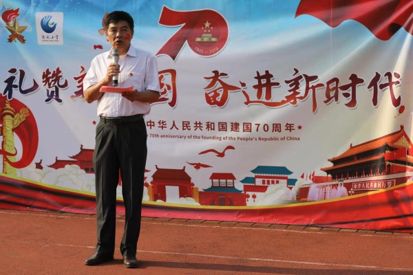 接著,港園小學(xué)劉奧鵬校長進(jìn)行講話。劉校長以新中國成立之初的生活困境與現(xiàn)在國家的繁榮昌盛作對(duì)比,勉勵(lì)同學(xué)們要把自己的小夢想融入到偉大的中國夢中,要立志向、有夢想、愛學(xué)習(xí),為實(shí)現(xiàn)偉大的中國夢而努力奮進(jìn)!