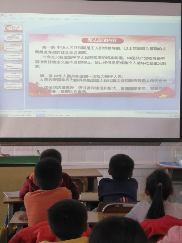 12月4日下午,全校開展了以“學(xué)法守法,杜絕欺凌”為主題的班會(huì)活動(dòng)。班會(huì)課上,各班班主任向?qū)W生們介紹了憲法的相關(guān)知識(shí),通過(guò)看視頻、詳細(xì)講解、案例剖析、圖片展示等形式,使學(xué)生對(duì)憲法有了較深的認(rèn)識(shí),幫助學(xué)生樹立了守法觀念,既杜絕了欺凌和暴力,同時(shí)又增強(qiáng)了學(xué)生的自我保護(hù)意識(shí)。課后,各班還要求學(xué)生根據(jù)這次班會(huì)的內(nèi)容,或?qū)W習(xí)后的所感所得,用手抄報(bào)或兒童畫的形式展現(xiàn)出來(lái),讓學(xué)生在動(dòng)筆、動(dòng)腦的過(guò)程中增強(qiáng)學(xué)法、守法的自覺性。