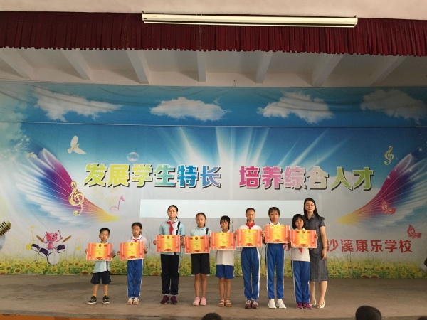 大會第二項活動是進行頒獎。學校對那些在本學期中獲得各類比賽大獎的個人和集體頒發(fā)證書和獎品,頒獎嘉賓由輔導老師擔任,共同分享這一快樂時刻。