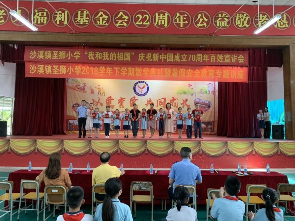 為了帶領師生共同回顧學期工作,及時表彰各級評選中取得好成績的師生和班級,指導學生合理安排假期的學習和生活,渡過一個愉快、安全而有意義的假期,7月5日上午,圣獅小學全體師生在學校禮堂舉行散學典禮,參加散學禮的還有圣獅村部分干部、交警、家長代表。