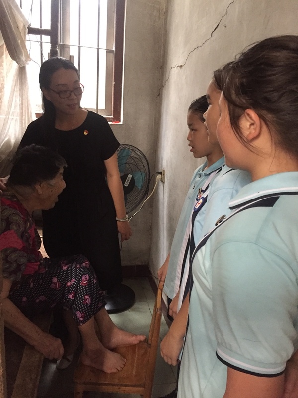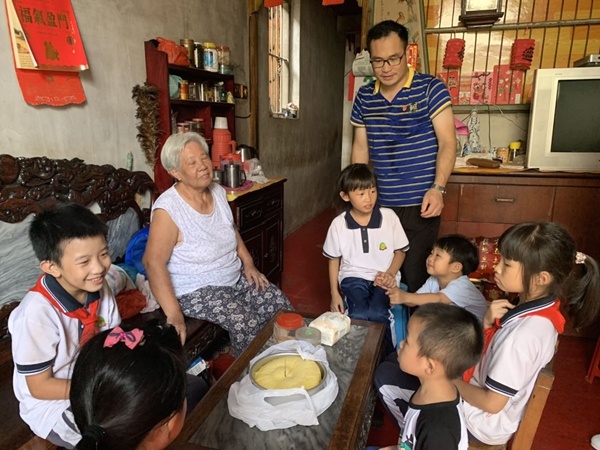 另一組探望隊伍中,劉婆婆見到師生們的到來,滿心歡喜開門來迎接。黃淑華同志細心詢問著劉婆婆的日常生活情況,發(fā)現(xiàn)劉婆婆腿腳行動不便,仔細一看,才知道劉婆婆給開水燙傷了,沒有用藥水處理,便立馬聯(lián)系村委會,轉(zhuǎn)聯(lián)系衛(wèi)生站跟進幫劉婆婆處理傷口。黃淑華同志和親子家長還注意到劉婆婆的茶罐已空,床上生活用品非常簡陋陳舊,便一邊安慰劉婆婆,一邊登記,準備下次為劉婆婆添置一些生活用品。臨近探望結(jié)束,劉婆婆依依不舍地站在門口揮手跟探望隊伍告別。