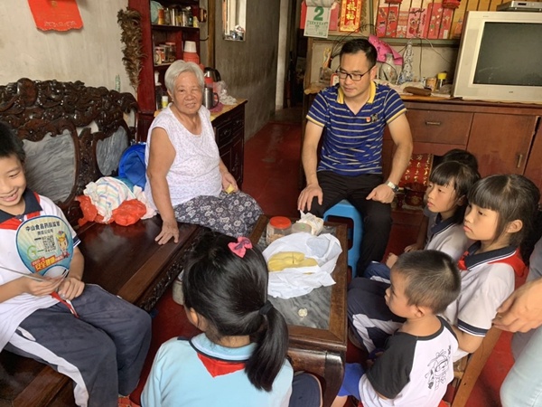 黨員教師和學生代表分成四個小組,帶上慰問品,給圣獅村的孤寡老人們送上暖暖的心意。以黃慧芳書記、黃燕紅同志、楊小玲同志為一組的隊伍,去探望已失明多年及行動不便的彭婆婆;以李春蘭同志、李愛明同志、鄧漢華同志為一組的隊伍,去探望獨居老人彭爺爺;以鄭劍鋒同志、黃淑華同志為一組的隊伍,去探望與老伴相依為伴的劉婆婆;以黃解球同志、李毅同志為一組的隊伍,去探望獨居老人陳婆婆。