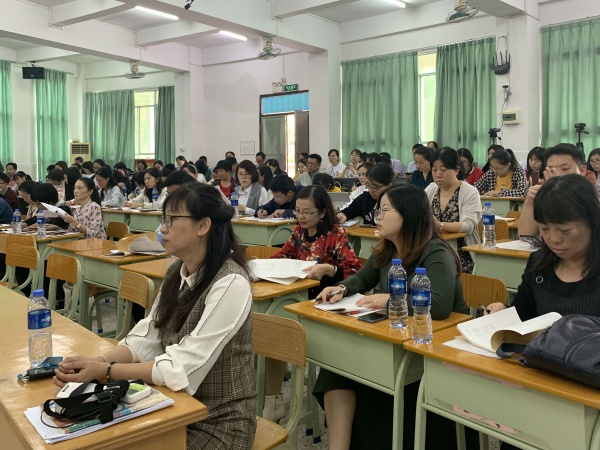 為了促進初中語文精品課程的區(qū)域推廣,提高我市語文教學質(zhì)量,促進初中語文教師專業(yè)化成長,11月12日上午,中山市2019年初中語文精品課程建設(shè)研用結(jié)合觀摩活動在沙溪中學舉行。中山市教育教學研究室張寶華老師及全市各鎮(zhèn)區(qū)初中語文中心教研組長、初中語文科組長、備課組長共二百余人參與了此次活動 首先,沙溪中學胡蓮華老師為本次觀摩活動帶來一節(jié)研討示范課,課例內(nèi)容源于沙溪中學榮獲中山市一等獎的精品課課程《立足比點,求同尋異——寫景類現(xiàn)代文對比閱讀方法指導》。課前,胡蓮華老師根據(jù)精品課程中所提到的方法對學生進行了長時間對比閱讀的訓練,頗有成效。本課主要立足“感官描寫”運用對比法,從感官描寫角度找出課內(nèi)外現(xiàn)代文寫景方法的異同,以此提升閱讀能力和鑒賞水平。在老師溫柔、大方的語言引導下,學生熟練運用尋讀法、批注法、對比法等,清楚辨識感官描寫的種類,賞析句子的在文段中的異同和作用。 在活動的第二個環(huán)節(jié),沙溪中學語文科組長宋曉靜老師交流分享了本校語文學科在精品課程建設(shè)和探索上的經(jīng)驗。首先,宋老師分享了對精品課程的定義,并且認為精品課建設(shè)離不開科學的規(guī)劃、有序的實施、有力的保障、有效的運用幾個環(huán)節(jié)。接著,宋老師從沙溪中學精品課程實踐中,總結(jié)了鄭丹老師主持的獲獎精品課程的教學方法。最后,宋老師分享了沙溪中學語文科組從個人備課到科組集體教研打磨、從校內(nèi)PK至校本精品課程開發(fā)的相關(guān)經(jīng)驗,指出精品課程的有效運用不僅提高了學生的閱讀興趣,學生的閱讀量也在不斷增加。
