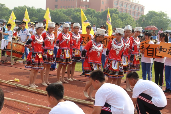 隨后進行各班入場儀式暨班級文化展示,各班全班學生參與以整齊的隊伍,飽滿的精神響亮的口號響亮展示班級精神面貌。各班根據本班特點,設計出具有本班班級文化,班級特色、形式新穎的入場表演,以班級單位在入場儀式上進行展示。此外,本次體育節(jié)的主題是“愛我中華”,各班通過創(chuàng)意特色展示環(huán)節(jié),表達了對祖國的熱愛及祝福。除了歷年的經典項目舞獅、跆拳道表演,今年更多的是傳統(tǒng)文化的展示,比如古箏、竹笛演奏,中國舞、民族舞表演,武術、舞旗展示,中國風歌曲演唱等。更值得一提的是,今年很多班級結合“愛我中華”主題進行表演,如再現長征場景的短劇,舞劇《紅星閃閃》,朗誦《少年強》,手語表演《國家》、中國舞和街舞結合展示年代變化、時代進步的《大中國》等,充分表現沙中師生熱烈的愛國之情。
