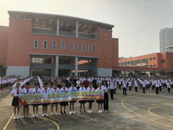 為落實中山市教體局《關(guān)于做好中華人民共和國成立70周年慶?;顒拥耐ㄖ方M織開展“我和我的祖國”主題教育活動精神,激發(fā)學(xué)生愛國愛黨熱情,9月9日上午,在沙溪中學(xué)鶴鳴廣場每周一例行的升旗禮上,學(xué)校組織了“我和我的祖國”和“禁毒宣誓”為主題的國旗下講話。全校2100余名師生參加本次活動。