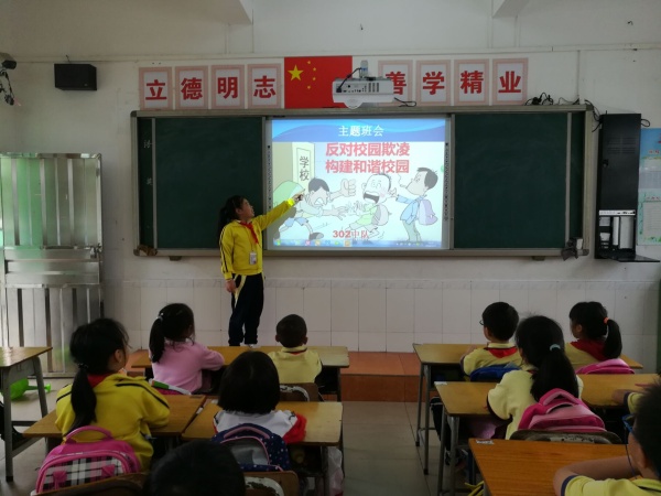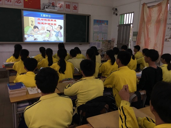 當(dāng)天早上,學(xué)校通過(guò)國(guó)旗下講話、校園廣播等形式,引導(dǎo)學(xué)生了解校園欺凌事件的預(yù)防知識(shí)和處理方式。上午第一節(jié),各班在教室里開(kāi)展了形式多樣的班會(huì)活動(dòng)。各班在班主任的精心組織下,有的觀看了《預(yù)防校園暴力,共建和諧校園》專題教育片。同學(xué)們?cè)谟^看了校園欺凌的案例后展開(kāi)了激烈的討論,主要討論了校園暴力及其危害、如何預(yù)防和應(yīng)對(duì)校園暴力、實(shí)施校園暴力,是否需要承擔(dān)法律責(zé)任等相關(guān)內(nèi)容。有的老師則以發(fā)生在校園內(nèi)的中小學(xué)生欺凌和暴力現(xiàn)象為切入點(diǎn),以案釋法,通過(guò)視頻播放、法律講解等形式與學(xué)生進(jìn)行交流和互動(dòng),引導(dǎo)學(xué)生共同了解校園欺凌的含義,發(fā)生的原因及其危害性,增強(qiáng)了學(xué)生的反欺凌意識(shí),切實(shí)提高了學(xué)生明辨是非和自我保護(hù)能力。通過(guò)主題鮮明,形式多樣班會(huì)課,學(xué)生對(duì)“校園欺凌”有了進(jìn)一步的認(rèn)識(shí),掌握了預(yù)防校園欺凌的應(yīng)對(duì)辦法。最后,各班班主任還進(jìn)行了相關(guān)總結(jié),并提醒學(xué)生如果遇到了校園欺凌時(shí),不要藏在心里,要第一時(shí)間告訴老師或家長(zhǎng),尋找共同解決的辦法。