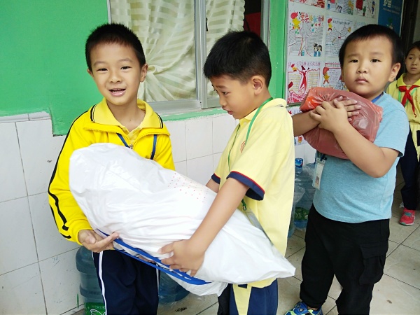 10月28日早上的升旗儀式,校長劉鍵向全體師生發(fā)出“情系山區(qū) 捐獻(xiàn)衣物”舊衣物捐贈活動的倡議。倡議活動結(jié)束后,全校師生積極參與,各中隊輔導(dǎo)員回到中隊再次發(fā)動隊員們進(jìn)行舊衣物回收的倡議,請隊員們將用不著的舊的衣服、書包、鞋子、公仔和被單打包好,于29日早上一起帶到學(xué)校來進(jìn)行“情系山區(qū) 捐獻(xiàn)衣物”“一件衣服,一份溫情”的舊衣服回收活動。這次的愛心捐贈活動也得到了家長們的大力支持,有的家長主動和老師聯(lián)系,把自己家里閑置的衣物全部捐贈出來;有的孩子小捐贈的衣物較多,家長就主動把衣物送到學(xué)校來……一個小小的舉動,匯聚成了濃濃的暖流。在短短的時間里,學(xué)校共收集到大量學(xué)生捐贈的衣物。 10月29日下午,在志愿者代表的協(xié)力幫忙下,學(xué)校把這批捐贈的物品交給鄰舍社會工作服務(wù)中心工作人員。