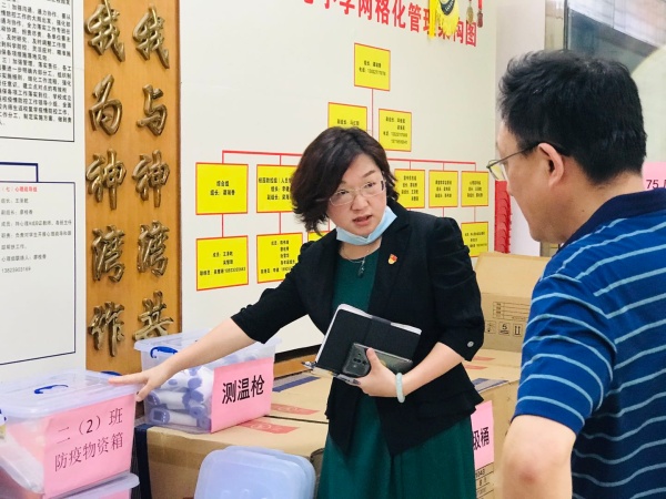 結(jié)束炎炎烈日下的實地走訪和查看詢問后,廖誠副書記及隨行人員、朱寶明主任、李秀瓊老師與譚瑞香校長等人進(jìn)入學(xué)校二樓指揮部,進(jìn)行了返校防疫防控抽檢工作座談。隨行人員對照評估驗收檢查明細(xì)表,開始查閱學(xué)校疫情防控責(zé)任體系及工作機(jī)制、方案制度等各項檔案資料,仔細(xì)翻閱了開學(xué)工作方案等“兩案九制”、師生健康臺賬、疫情防控培訓(xùn)、開學(xué)應(yīng)急演練、校園封閉管理等學(xué)校疫情防控相關(guān)資料,廖誠副書記則結(jié)合學(xué)校開展的返校準(zhǔn)備工作,與譚瑞香校長及學(xué)校行政班子進(jìn)行了真誠的溝通交流。廖副書記充分肯定了神灣中心小學(xué)在校園疫情防控和返校工作方面付出的努力,高度評價了學(xué)校開展的工作,既落到了實處,又做得井井有條、細(xì)致入微。在抽檢工作的座談現(xiàn)場,廖書記語重心長地與譚瑞香校長說道,除了防疫,還要防“心”,要時刻重視并關(guān)注師生、家長的心理健康,與家長保持密切的聯(lián)系,利用好家長會、家訪等形式,做好學(xué)生心理、生活狀態(tài)的跟進(jìn)與反饋。此外,廖書記強(qiáng)調(diào),返校前后,學(xué)校要提醒班主任做好學(xué)生家庭情況的調(diào)查了解,要給予離異家庭、寄養(yǎng)家庭、經(jīng)濟(jì)困難家庭、父母失業(yè)家庭等類型學(xué)生足夠的情感關(guān)心與生活重視,做好教師、家長的情緒調(diào)節(jié)與焦慮排解工作,為學(xué)生提供衛(wèi)生健康、溫馨和諧的生活與學(xué)習(xí)環(huán)境。