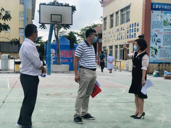 為貫徹落實(shí)中山市春季師生返校的驗(yàn)收工作要求,結(jié)合神灣中心小學(xué)提交的第三批學(xué)生返校申請(qǐng),5月6日下午,由神灣鎮(zhèn)黨委委員張寧溥、教育事務(wù)指導(dǎo)中心主任朱寶明、鎮(zhèn)疾控中心副所長陸志良、食藥監(jiān)所所長韓華彰、社區(qū)衛(wèi)生服務(wù)中心主任馮君玲聯(lián)合組成的師生返校評(píng)估驗(yàn)收工作組,抵達(dá)神灣中心小學(xué),開展了開學(xué)準(zhǔn)備工作的檢查與驗(yàn)收工作。