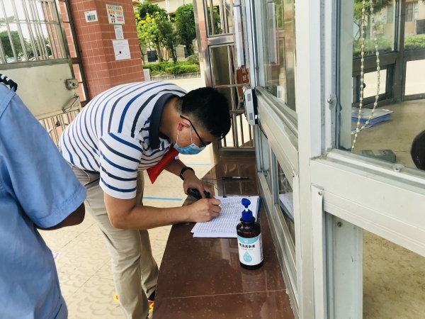 在校門口,驗(yàn)收小組組長張寧溥委員帶頭自覺接受了體溫檢測并做好入校登記,組員疾控中心陸志良在門衛(wèi)處查看了出入登記,仔細(xì)詢問安保人員如何做好人員進(jìn)出防控。驗(yàn)收小組做完入校檢查登記后,按照驗(yàn)收分工,分頭對(duì)學(xué)校防疫防控工作的組織管理、校園環(huán)境設(shè)施管理、物資管理等工作模塊進(jìn)行了檢查驗(yàn)收。在譚瑞香校長的陪同下,驗(yàn)收小組組長張寧溥、組員朱寶明主任聽取了學(xué)校春季防疫的工作匯報(bào),實(shí)地查看了臨時(shí)健康觀察區(qū)、學(xué)校大堂、學(xué)生課室及洗手間等場地,仔細(xì)查看這些重點(diǎn)場所的防疫建設(shè)和物資配備情況,并細(xì)心詢問學(xué)生分批進(jìn)出校及錯(cuò)峰就餐的落實(shí)情況。驗(yàn)收小組成員陸志良、韓華彰及馮君玲,根據(jù)任務(wù)分工走訪查看了學(xué)校食堂、防疫物資室、留觀區(qū)等地,一一檢查與學(xué)生健康密切相關(guān)的飲水、食品等安全問題,確保配備足額保質(zhì)的防疫物資。