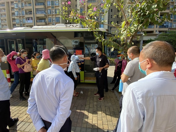 然后,由公交公司的蘇隊長傳達市教體局有關(guān)校車的疫情防控要求。校車所有工作人員必須持有粵康碼才能上崗,每輛校車必須配備測溫槍和消毒用品,每天對每輛校車進行全面消毒,對每輛校車進行安全檢查,保證行車安全。學(xué)生上車前必須測溫,詳細記錄每位學(xué)生的健康狀況,如發(fā)現(xiàn)體溫超過37.2度的學(xué)生,嚴禁該生上車,并及時通知家長。