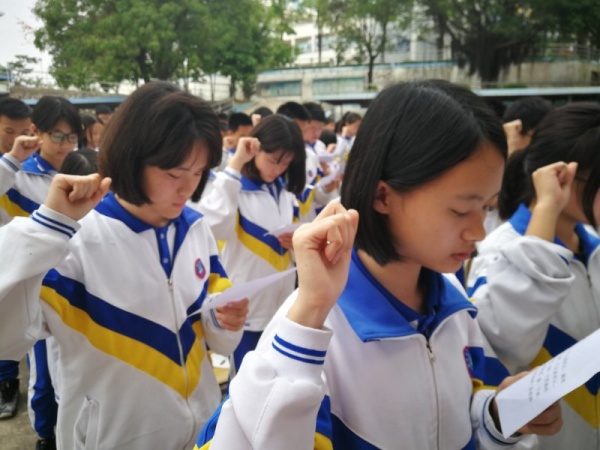 會(huì)議的最后,九年級(jí)全體學(xué)子在學(xué)生代表的帶領(lǐng)下,在師長(zhǎng)的注視下,以氣吞山河之勢(shì)向中考發(fā)出自己鏗鏘誓言,那擲地有聲的錚錚誓言響徹校園每一個(gè)角落。
