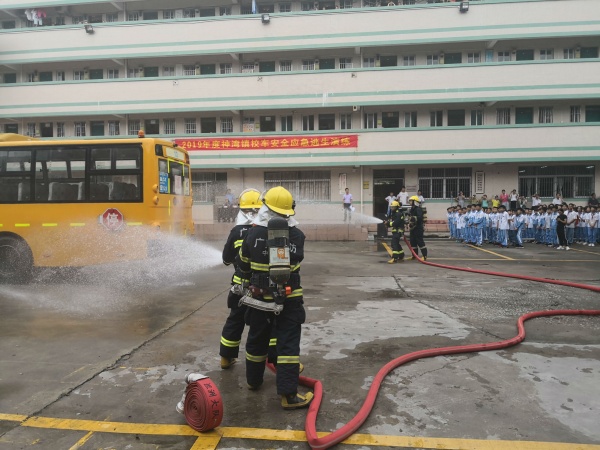 為了進一步加強我鎮(zhèn)校車的安全管理,加強學生安全知識的宣傳和教育,提高乘車學生的安全意識和防范能力,維護學校正常的教學秩序和社會的穩(wěn)定。2019年6月13日上午,神灣鎮(zhèn)教育事務指導中心聯(lián)合神灣鎮(zhèn)交警大隊、神灣鎮(zhèn)交通分局、神灣醫(yī)院、神灣消防中隊等部門,在神舟學校舉行“2019神灣鎮(zhèn)校車安全應急逃生演練”活動。神灣鎮(zhèn)各中心小學、幼兒園校長、園長及分管安全的領導參加活動。活動由神舟學校德育處韋德敏主任主持,神舟學校六、七年級700多人學生參加了演練。
