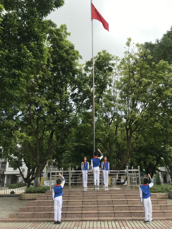 本次升旗儀式由大隊長陳欣怡同學(xué)主持,在全體師生的注目禮下,當(dāng)學(xué)校鼓號隊的出旗曲響起,護旗手踏著整齊劃一的步伐,將國旗護送至升旗臺,交至升旗手的手中。激昂的《義勇軍進行曲》響起,全體注目,少先隊員行隊禮,用飽滿的熱情奏唱國歌,五星紅旗在空中冉冉升起。