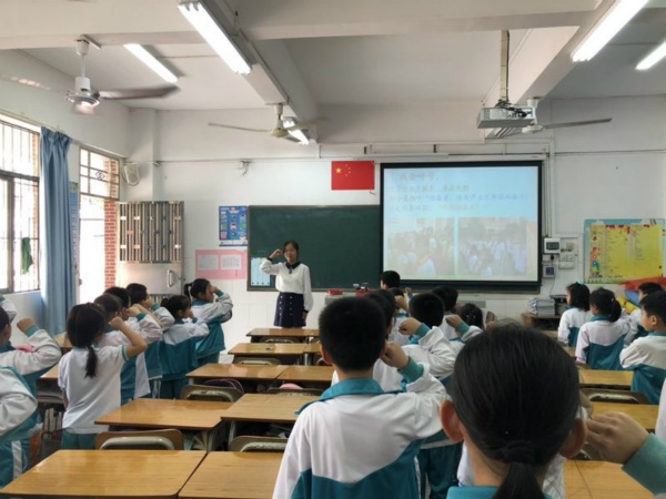 本次隊(duì)前教育活動(dòng),大隊(duì)輔導(dǎo)員羅老師首先通過(guò)幻燈片的方式,給學(xué)生講解了少先隊(duì)的隊(duì)名、隊(duì)旗、標(biāo)志等基本知識(shí)。接著,羅老師給學(xué)生們示范如何佩戴紅領(lǐng)巾、呼號(hào)和敬隊(duì)禮。一年級(jí)的學(xué)生認(rèn)真聆聽(tīng),用心模仿,興趣高漲。部分學(xué)生還走上講臺(tái)來(lái)給其他孩子示范如何佩戴紅領(lǐng)巾,正確的行一個(gè)標(biāo)準(zhǔn)的隊(duì)禮。之后,羅老師給學(xué)生展示了如何書(shū)寫(xiě)“入隊(duì)申請(qǐng)書(shū)”以及注意的事項(xiàng)。本次活動(dòng)在“隊(duì)前知識(shí)我知道”小搶答活動(dòng)中圓滿畫(huà)上句號(hào)。從孩子們一張張滿足的笑臉中,可以看出本節(jié)課他們收益匪淺,感受到他們對(duì)少先隊(duì)組織的向往。