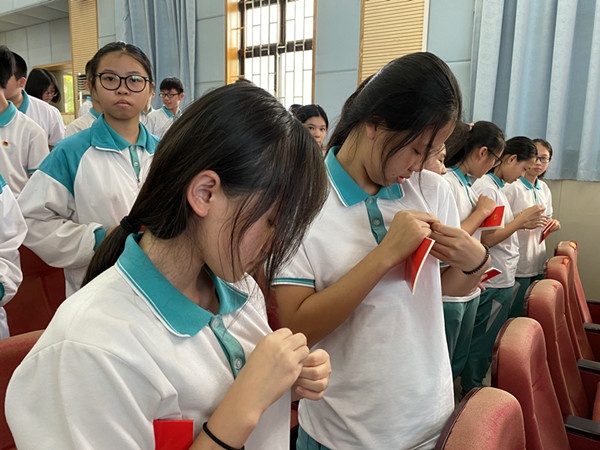 為慶祝建黨99周年,火炬二中于6月29日下午舉行了新團(tuán)員入團(tuán)儀式暨少先隊(duì)離隊(duì)儀式,通過(guò)“集體離隊(duì)”等學(xué)生自我教育的活動(dòng)形式,幫助學(xué)生邁好“青春第一步”,“扣好人生中第一顆扣子”,從而使學(xué)生明確將要肩負(fù)的歷史和社會(huì)責(zé)任,培養(yǎng)開(kāi)拓進(jìn)取、奮發(fā)向上的拼搏精神,激發(fā)學(xué)生熱愛(ài)共產(chǎn)黨、熱愛(ài)共青團(tuán),熱愛(ài)少先隊(duì)的思想情感。