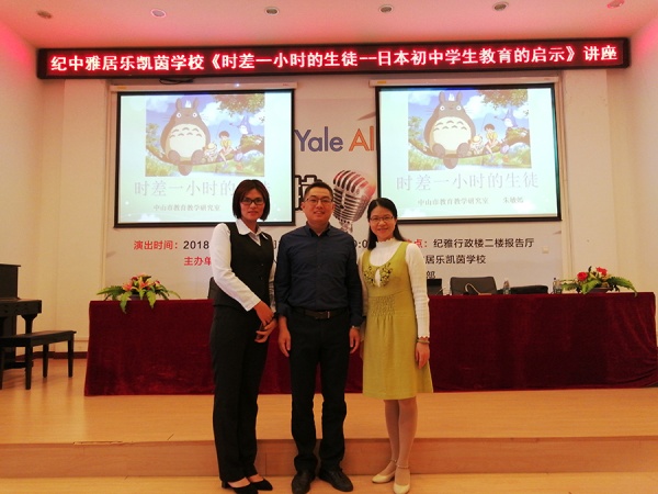 “家校聯(lián)動教育教學模式”是紀中雅居樂凱茵學校的一大教學特色,繼紀雅學校家長服務中心成立儀式之后,學校的家校合作更為密切有效。2018年4月11日下午,由袁祥樊校長助理和廖偉樂副主任組織,初一(5)班黃佳薇家長多方協(xié)調,盛情邀請中山市教育教學研究室的朱敏嫣老師為我們上了的一堂不同尋常的班會課。初一年級的六百余名同學、袁祥樊校長助理、廖偉樂副主任和初一年級12名班班主任,齊聚報告廳,聆聽了朱敏嫣老師主講的一場名為《時差一小時的生徒——日本初中學生教育的啟示》的講座。