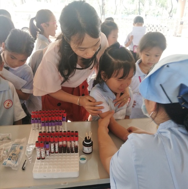 低年級學(xué)生中出現(xiàn)個別怕抽血的孩子,不敢將胳膊伸響醫(yī)務(wù)人員,在班主任老師的溫暖陪伴下,輕聲呵護(hù)中,孩子最終戰(zhàn)勝恐懼,勇敢的將胳膊伸給了醫(yī)生;肺活量檢查中,對于學(xué)生操作不當(dāng)?shù)牡胤?,醫(yī)務(wù)人員及時指導(dǎo),確保檢查無誤;測身高的區(qū)域,時不時聽到孩子們驚喜地交流,長高啦,長高啦……視力檢測區(qū)域,學(xué)生們按照醫(yī)務(wù)人員要求,準(zhǔn)確無誤的完成檢查,對于視力低下的同學(xué),醫(yī)務(wù)人員進(jìn)行正確用眼,及平時用眼需注意事項的講解。