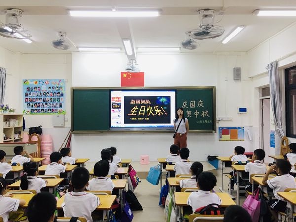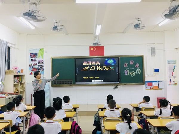 上課鈴聲響起,石岐高家基小學(xué)舉行了莊嚴(yán)的升旗儀式,五星紅旗在高家基學(xué)子嘹亮的國歌聲中緩緩升起。升旗儀式結(jié)束后,各班有序地回到教室,開展“慶國慶 迎中秋”的主題班會。