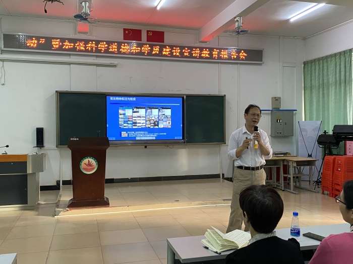 10月19日下午,金風(fēng)送爽,水碧山青。中國(guó)科學(xué)院自動(dòng)化研究所研究員盧漢清教授,為北區(qū)中學(xué)初二級(jí)學(xué)生送來2020年中山市“中國(guó)科學(xué)院老科學(xué)家演講團(tuán)進(jìn)校園活動(dòng)”暨加強(qiáng)科學(xué)道德和學(xué)風(fēng)建設(shè)宣講教育報(bào)告會(huì)。北區(qū)中學(xué)趙翠顏校長(zhǎng)、博愛小學(xué)虞彩花校長(zhǎng)出席活動(dòng)。