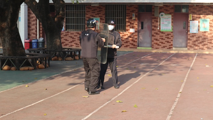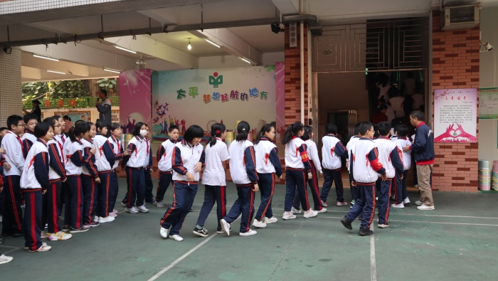 石岐太平小學(xué)一直把學(xué)生的安全擺在首位,借助復(fù)習(xí)動員會議的最后,潘杰主任順勢和該校學(xué)生進(jìn)行了防暴安全演練,逐班解說了疏散的方法和注意事項,各班同學(xué)在班主任和副班主任老師的指引下有序撤離,回到教室?;氐浇淌液蟀匆筮M(jìn)行相關(guān)的關(guān)門窗的工作。