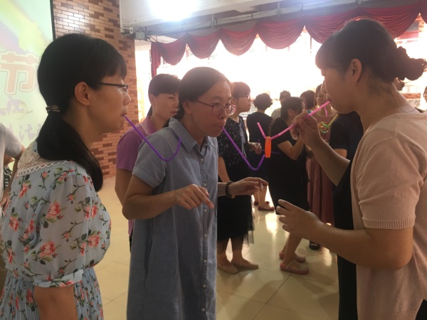 活動(dòng)的第二個(gè)內(nèi)容是在學(xué)校的小舞臺(tái)舉行慶中秋趣味活動(dòng)。在小舞臺(tái)上,老師們一改這幾天開(kāi)學(xué)的疲態(tài),個(gè)個(gè)精神抖擻?;顒?dòng)由潘杰副主任支持。此次的趣味運(yùn)動(dòng)會(huì)共設(shè)2個(gè)活動(dòng)項(xiàng)目,一個(gè)是 “心心相印”的吸管傳圈,另一個(gè)是“愛(ài)心傳遞”的傳呼拉圈。活動(dòng)過(guò)程熱鬧非凡,整個(gè)小舞臺(tái)都充滿了歡聲笑語(yǔ),引得旁邊的學(xué)生和家長(zhǎng)都樂(lè)不可支。