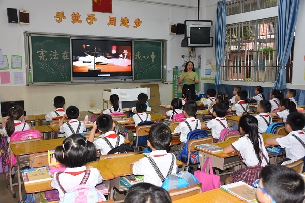 為了加強學校法制建設,提高學生法律意識,預防未成年人犯罪,日前,石岐西廠小學舉行了以“憲法在我心中”憲法教育大課堂活動。