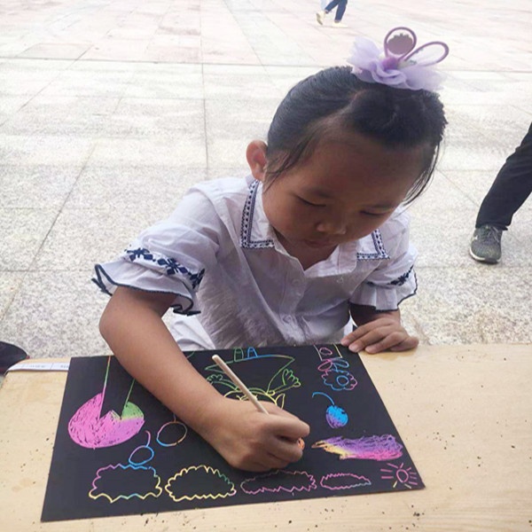 石岐第一城小學此次設置了“環(huán)保設計師”和“制作葉脈書簽”兩項活動?;顒舆€沒正式開始,石岐第一城小學展位前早已站滿了人群,大家都迫不及待想要大展身手?!碍h(huán)保設計師”一共有三個主題:1、為科技成果展設置一個環(huán)保圖標;2、描繪你理想中的綠色家園;3、設計一個環(huán)保機器人;孩子們可以任選一個主題進行創(chuàng)作。展位前,孩子們手中的筆在紙上舞動,很快一張張想象豐富、構圖精美、色彩繽紛的畫便呈現(xiàn)在人們眼前?!爸谱魅~脈書簽”考驗的是孩子們的耐力和動手能力,將煮好處理過的桂葉,用細毛牙刷輕輕敲,或輕輕刷,使得葉肉和葉脈逐步分離,這時候使用的力度顯得格外重要,力氣小了,沒效果,力度大了,會將葉脈脈絡一起破壞了。實驗桌前,孩子們細心地刷著盆中的葉脈,十五分鐘、甚至半個小時過去了,孩子們仍堅持不懈,認真地刷著手中的葉子。