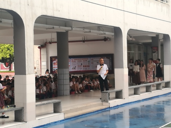 第二項梁校長致詞,梁校長在講話中回顧了石岐第一城小學(xué)上學(xué)年取得的一系列可喜的成績,讓大家看到了累累的碩果,接著校長又作了題為《熱愛生命 積極鍛煉》的致辭,用實際溺水案例告訴學(xué)生身體健康和生命安全的的重要性,之后梁校長提到暑假期間學(xué)校進行了設(shè)施設(shè)備的規(guī)范完善,學(xué)生們在感嘆的同時也沉浸在享受學(xué)校新環(huán)境中。梁校長還告訴大家除了學(xué)校更換了面貌,新學(xué)期學(xué)校也迎來了14位新教師,一一介紹后,學(xué)生們也用熱烈的掌聲歡迎了自己的老師,最后梁校長希望同學(xué)們積極主動閱讀課外書,努力增長才干,鍛煉能力,做一個關(guān)心生活、關(guān)心他人、關(guān)心未來的優(yōu)秀少年!