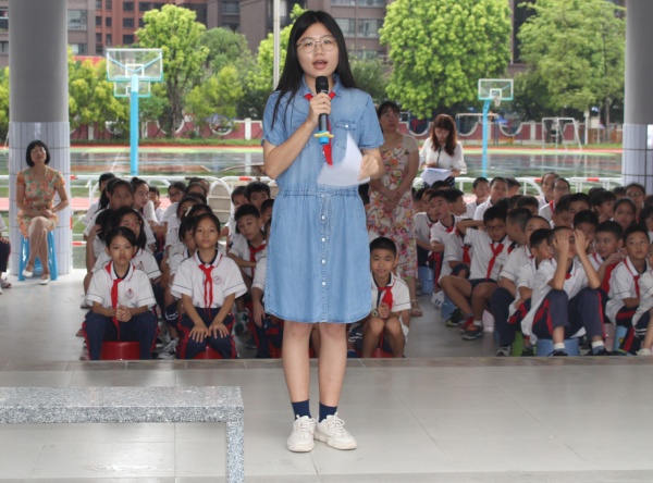 第三項新教師莫晴雯代表新入職的教師做了發(fā)言,莫老師代表全體師生表示在新的學(xué)期里好好學(xué)習(xí)、努力工作。
