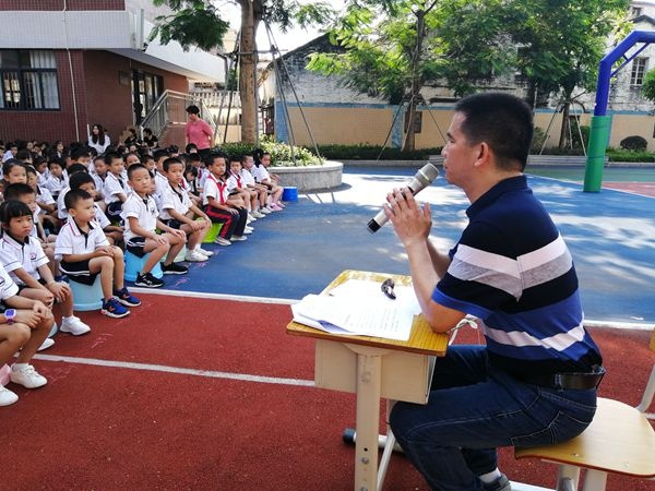 9月9日上午,石岐高家基小學(xué)召開了以“壯麗70年,奮斗新時(shí)代“為主題的愛國主義教育校會(huì)。會(huì)上黃榮勝校長從不同的角度講述新中國成立70周年的偉大成就,鼓勵(lì)孩子們勇于拼搏,奮發(fā)進(jìn)取,努力成為對社會(huì)對國家有用的杰出人才。黃校長把一腔愛國之情抒發(fā)在自己激情洋溢的講演中,使全體師生深受鼓舞。