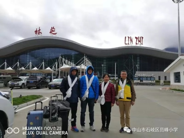10月8日凌晨兩點(diǎn),幫扶小組一行四人從中山出發(fā)到廣州白云機(jī)場,搭乘6:00的班機(jī)飛往林芝。9:50分,班機(jī)準(zhǔn)時抵達(dá)林芝機(jī)場。西藏工布江達(dá)縣錯高鄉(xiāng)中心小學(xué)德瑪校長非常熱情,特地驅(qū)車數(shù)百公里來林芝機(jī)場接機(jī)。德瑪校長為四位老師獻(xiàn)上了潔白的哈達(dá),藏族同胞的熱情好客感染著初上高原的中山老師們。