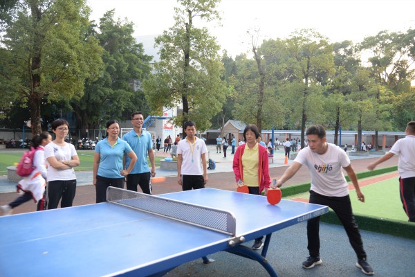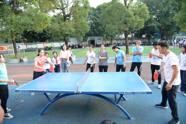 第一個項目是定點投籃比賽,每個級組派出5人參賽,每人投籃5個。一聲令下,只見老師們個個摩拳擦掌,全神貫注,奮勇一躍,在經(jīng)過幾次嘗試之后,老師們的命中率也越來越高,在投中的瞬間,全場總是掌聲雷鳴,令人振奮。第二個項目是乒乓球比賽,每個年級組派出5名代表分別參加單打和雙打,比賽過程高潮迭起,選手們一個個精彩的防守和絕殺都引起觀眾們的陣陣喝彩。最后根據(jù)總得分分別評出表現(xiàn)優(yōu)秀級組,并頒發(fā)獎狀。活動第三項,工會成員給全校老師頒發(fā)活動紀念品。沐浴著陽光,大家?guī)е顮N爛的笑臉留下了最美的大合照。