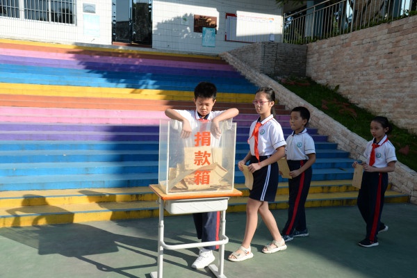 9月23日上午,石岐張溪鄭二小學(xué)的全體師生齊聚小操場,首先由五1班的同學(xué)代表進(jìn)行國旗學(xué)的講話《愛護(hù)地球,就是愛護(hù)我們?nèi)祟愖约骸?,接著舉行“2019年石岐區(qū)東西部扶貧”捐款儀式,在戴織校長的帶領(lǐng)下,全體行政、老師及各班學(xué)生代表手里都捧著一份沉甸甸的愛心走向捐款箱。贈人玫瑰,手留余香。學(xué)校全體師生以點(diǎn)滴之愛滋潤一批批困難家庭和需要幫助的人的心靈。最后全校師生一起合唱《我和我的祖國》,在嘹亮的歌聲當(dāng)中結(jié)束了今天的活動。