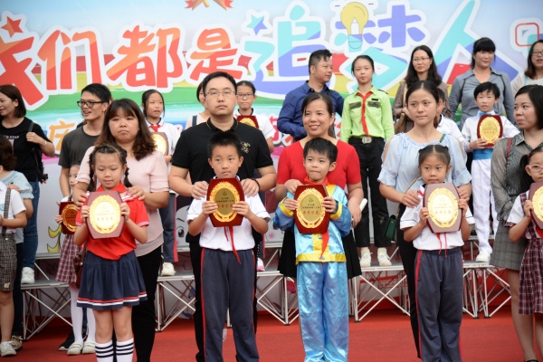 5月31日,石岐張溪鄭二小學(xué)舉行了“我們都是追夢人”慶祝六一兒童節(jié)表彰大會暨文藝匯演活動?;顒右潦?,尹程副校長介紹了出席本次活動的領(lǐng)導(dǎo)及嘉賓有石岐區(qū)團(tuán)工委書記馬柏成,石岐區(qū)教育事務(wù)指導(dǎo)中心副主任郭洪亮,石岐區(qū)宏基派出所民警、石岐張溪鄭二小學(xué)法制副校長黃存容警官,石岐一中隊(duì)楊桂花警官,康華社區(qū)黨委副書記葉蓮心,張溪資產(chǎn)公司關(guān)沛樟?xí)洠瑥埾嵍W(xué)家委主席楊罡,退休教師及家委家長代表三百余人。接著,戴織校長上臺致辭,代表學(xué)校向孩子們致以最真誠的節(jié)日問候,以“我們都在努力奔跑,我們都是追夢人”回顧了學(xué)校一年來取得的進(jìn)步和成績,提出了學(xué)校今后的發(fā)展規(guī)劃,并希望全體同學(xué)珍惜時間和機(jī)遇,努力學(xué)習(xí),全面發(fā)展,不辜負(fù)老師家長的厚望,不辜負(fù)祖國的期望;希望每一個人都能夠發(fā)揚(yáng)夢想精神,繼續(xù)在奔跑中擁抱夢想、成就夢想。隨后,尹程副校長主持表彰大會,對2018學(xué)年度優(yōu)秀家長及學(xué)生進(jìn)行表彰,表彰項(xiàng)目包含學(xué)校優(yōu)秀家委、班級好家長、書香家庭、學(xué)校優(yōu)秀護(hù)校隊(duì)、優(yōu)秀少先隊(duì)干部、優(yōu)秀班干部、美德少年、閱讀之星、優(yōu)秀少先隊(duì)員等。家長和孩子們面帶微笑地上臺領(lǐng)獎與領(lǐng)導(dǎo)嘉賓合影留念。