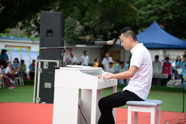 在主持人激情洋溢的話語中精彩紛呈的文藝匯演拉開了帷幕。此次活動節(jié)目內(nèi)容豐富,形式多樣,精彩紛呈,高潮迭起。張溪村委傳承中華傳統(tǒng)文化的《舞獅》表演看得孩子們目瞪口呆;朗誦社團(tuán)的詩歌朗誦《我有一個夢想》鏗鏘有力;張溪村委帶來的張溪大棍博得孩子們陣陣掌聲;舞蹈社團(tuán)《快樂的音樂課》將歡樂灑滿整個校園;夏蔭芳老師帶來的《貝加爾湖畔》飄逸而空靈,讓人沉醉;非洲鼓《最炫民族風(fēng)》展示了孩子們多方面的才藝;班級大合唱歌聲嘹亮,唱響云霄,把慶?;顒油葡蛄烁叱薄麄€校園回蕩著此起彼伏的掌聲。大家用歡快的歌聲唱出了小朋友的幸福和愉悅;用悠揚(yáng)的琴聲奏出了同學(xué)們的純真和朝氣,用優(yōu)美的舞姿舞出了少先隊(duì)員的理想和追求;用質(zhì)樸的語言道出了同學(xué)們的夢想和方向。