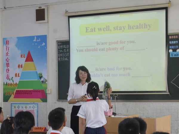 英語(yǔ)科組蔡盈盈老師帶來(lái)“staying healthy”一課,深入挖掘課文圖片及重點(diǎn)單詞,采用思維導(dǎo)圖的方式引導(dǎo)學(xué)生復(fù)述故事,分辨常見(jiàn)生活習(xí)慣的好與壞,給予他人保持健康的建議。課堂上,同學(xué)們口語(yǔ)流利,詞匯量豐富,贏得了觀(guān)課教師的陣陣掌聲!