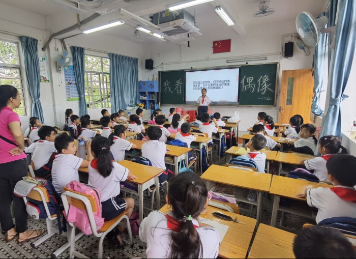青少年時期是人們形成世界觀、人生觀和價值觀的重要階段,偶像崇拜是當(dāng)今青少年精神生活的一部分,是成長的必經(jīng)之路,是社會化的重要歷程。為了科學(xué)地引領(lǐng)幫助孩子們樹立正確的偶像觀,發(fā)揮偶像們的激勵作用。9月27日,石岐實驗小學(xué)對全校同學(xué)進(jìn)行了“我看偶像”主題班隊活動。