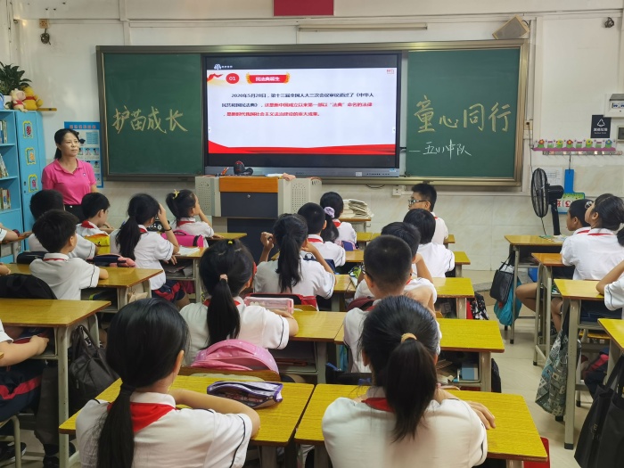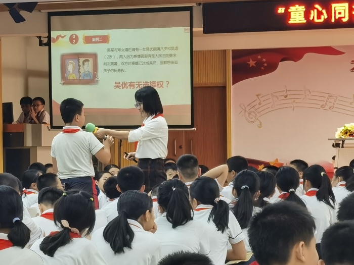孩子們認(rèn)真傾聽、積極發(fā)言,現(xiàn)場氣氛十分活躍。通過學(xué)習(xí),讓學(xué)生對兒童權(quán)益有了更深刻的理解。同時(shí)也讓學(xué)生樹立了正確的觀念與態(tài)度,并建立了正確的社會交往行為。孩子們表示學(xué)到了很多自我保護(hù)知識。