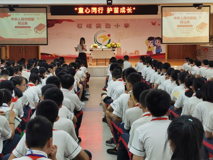 為貫徹落實(shí)2021年中山市民生實(shí)事“童心同行 護(hù)苗成長”兒童權(quán)益保護(hù)項(xiàng)目,維護(hù)婦女兒童合法權(quán)益,加強(qiáng)兒童人身安全宣傳教育。9月13日上午,市婦聯(lián)聯(lián)合中山市巾幗法治宣講團(tuán)走進(jìn)石岐實(shí)驗(yàn)小學(xué),開展中山市“童心同行 護(hù)苗成長”兒童權(quán)益保護(hù)百場公益宣講活動(dòng)。