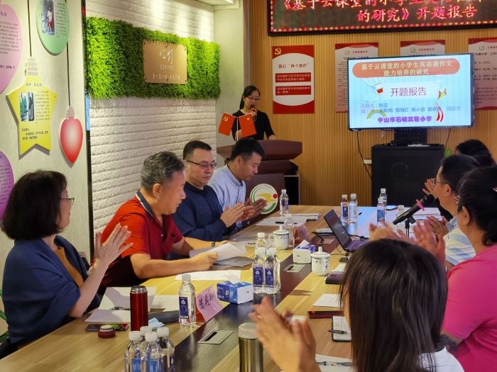 參與報告會的有中山市教育技術(shù)中心賈建榮老師、魏國營老師,沙溪鎮(zhèn)教育和體育中心英語教研員、教科研專干張乖祥老師,中山市石岐街道教育和體育事務(wù)中心陳再玲老師,課題組全體成員及各學(xué)科組長。