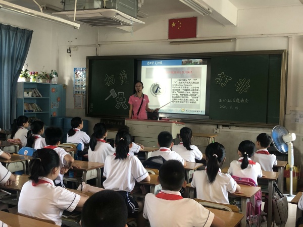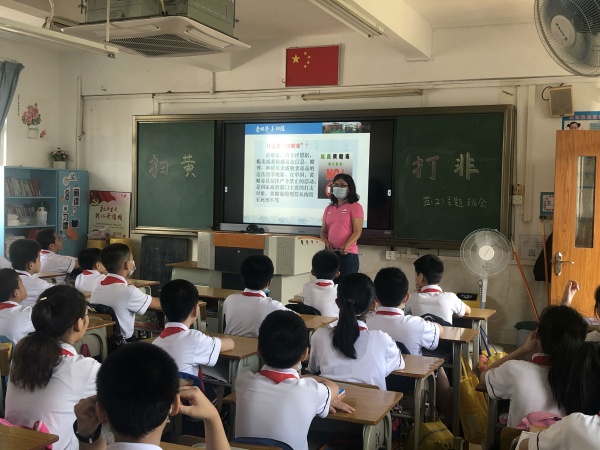 為切實(shí)保護(hù)未成年人身心健康、積極營(yíng)造良好的校園文化環(huán)境,進(jìn)一步深化“掃黃打非”進(jìn)校園工作,全面引導(dǎo)師生遠(yuǎn)離“黃”“非”毒瘤,自覺(jué)養(yǎng)成良好的生活學(xué)習(xí)習(xí)慣,打造陽(yáng)光健康、積極向上的精神家園,日前,石岐實(shí)驗(yàn)小學(xué)開(kāi)展了“掃黃打非”主題系列活動(dòng),星期三中午通過(guò)紅領(lǐng)巾電視臺(tái)進(jìn)行“掃黃打非”活動(dòng)動(dòng)員,接著全校觀看掃黃打非公益視頻,四年級(jí)寫感想,五、六年級(jí)做手抄報(bào),三到六年級(jí)參加漫畫創(chuàng)作等系列活動(dòng),2020年6月15日上午五六年級(jí)開(kāi)展主題班會(huì)活動(dòng)。