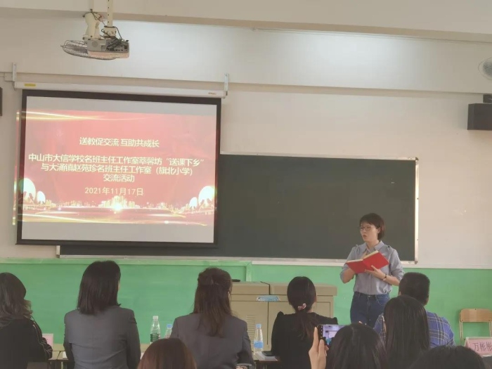 為充分發(fā)揮名班主任工作室的引領(lǐng)輻射作用,進(jìn)一步加強(qiáng)“巾幗文明崗”的服務(wù)力度,促進(jìn)教師間的相互交流和共同提高,2021年11月17日下午,在學(xué)校德育處副主任高靜的帶領(lǐng)下,大信學(xué)校名班主任工作室萃馨坊全體成員及育英坊坊主王冠、擷香坊坊主高姍姍等老師,赴大涌鎮(zhèn)旗北小學(xué)開展崗村聯(lián)動(dòng)活動(dòng)。