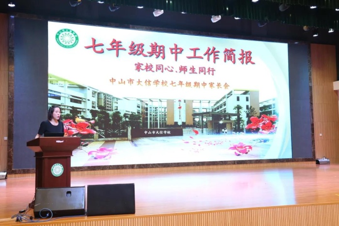初中部家長會分別在演藝廳和教室開展,七年級級組長寇璐老師以“家校同心,師生同行”為主題面向七年級家長們做了精彩的級組教育教學(xué)工作匯報??芾蠋熓紫纫孕@視頻剪影向家長們展示開學(xué)以來學(xué)校豐富多彩的校園活動,充分展現(xiàn)了大信學(xué)校初中部堅持德育引領(lǐng),活動育人的辦學(xué)理念。緊接著寇老師從學(xué)校作息制度、精細(xì)化管理、德智體美勞全面發(fā)展、與兄弟學(xué)校進(jìn)行交流學(xué)習(xí)等方面展現(xiàn)了學(xué)校在教育教學(xué)工作中取得的成效,讓家長們更全面地了解學(xué)校的辦學(xué)情況,進(jìn)一步增強了家校之間的溝通與聯(lián)系。