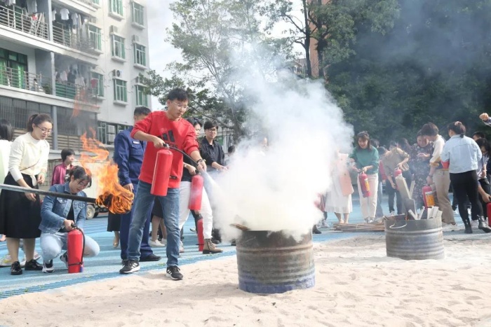 為了讓教職人員進(jìn)一步掌握消防知識和正確使用滅火器,演練結(jié)束后,學(xué)校請?zhí)厍谡救藛T再次進(jìn)行消防知識培訓(xùn)和現(xiàn)場滅火教學(xué),部分教師、保安、后勤人員參加了培訓(xùn),并在培訓(xùn)結(jié)束后,手持滅火筒對準(zhǔn)火源進(jìn)行滅火操作,通過親身實踐,熟練掌握滅火器的正確使用方法。