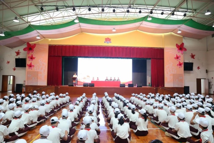 2021年10月11日晚,中山市大信學校2021屆初一國防教育結營儀式在學校體育館隆重舉行,校長馮冠祥、副校長杜少君、副校長孫慧濤、學校行政、初一年級全體教師、全體教官、初一學生及學生家長出席活動。此次會操表演分為齊步,正步,口號,停止間隙法,立正,稍息,蹲起等項目,同學們身姿挺拔,口號嘹亮,步伐整齊,斗志昂揚,充分展示了國防教育訓練取得的豐碩成績。教官代表高教官對大信學校同學們吃苦耐勞的精神表示贊美,對會操表演的精彩表示祝賀。孫校長充分肯定并表揚了同學們的表現(xiàn),對同學們發(fā)揚吃苦耐勞、堅忍不拔的精神給予厚望,期待他們在之后的學習生活中成為優(yōu)秀的學子。馬心怡同學代表全體七年級學生發(fā)言,分享了這幾天國防教育訓練的感悟和收獲,同時表示在以后的學習生活中繼續(xù)發(fā)揚訓練期間的堅韌不拔的意志,以良好的狀態(tài)繼續(xù)初中生活。