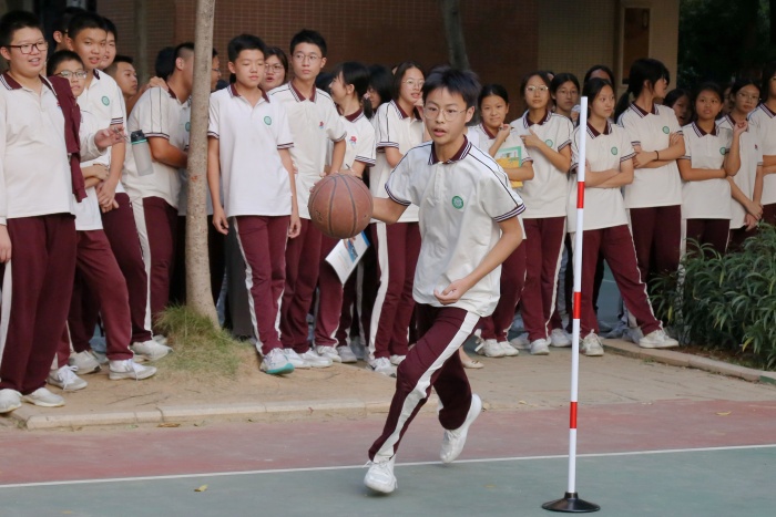 無(wú)籃球,不少年。在小學(xué)部熱火朝天的進(jìn)行著拔河賽的同時(shí),中學(xué)部的趣味籃球賽也正進(jìn)行的如火如荼。運(yùn)球,過(guò)球,上籃,一氣呵成,行云流水!帥氣的控球、隊(duì)員之間的默契配合,為班級(jí)榮譽(yù)而戰(zhàn),將場(chǎng)上的氛圍一次次推向高潮,贏得陣陣喝彩與掌聲。