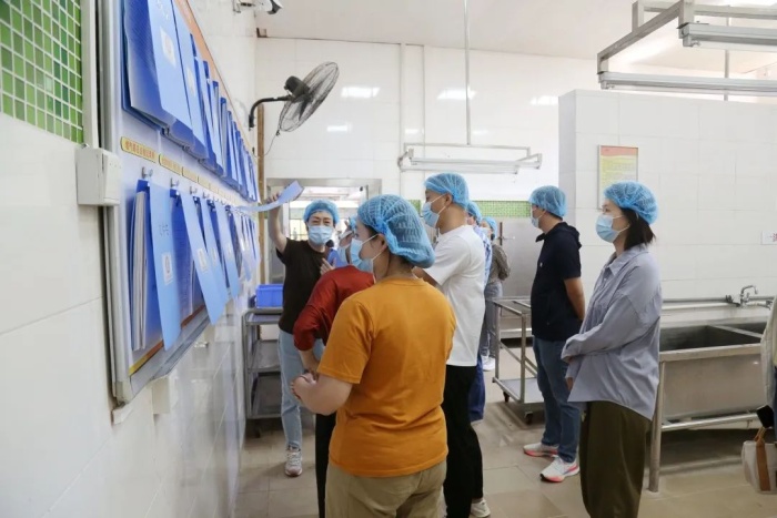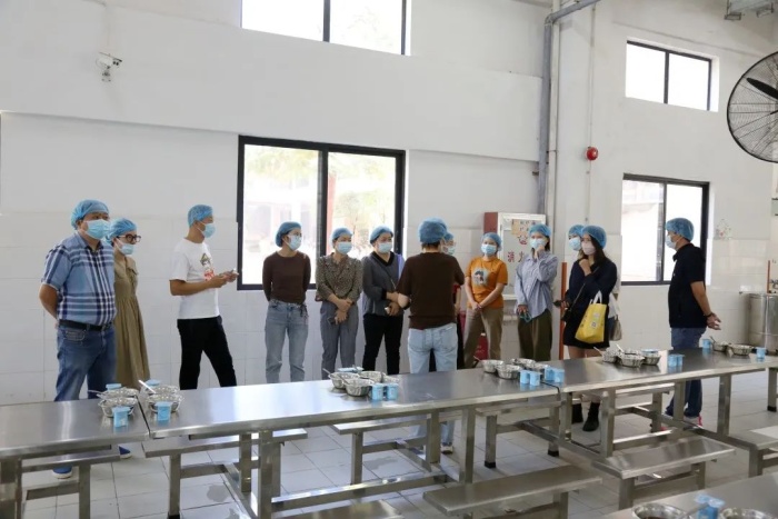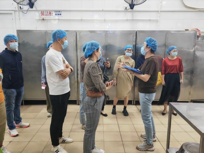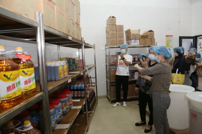 10月11日中午,初中部九年級的家長代表參與了此次家長陪餐活動,他們在學校高靜副校長、食堂負責人李小玲主任的陪同下一起到食堂實地查看,對食堂的倉庫、廚房、洗消間、加工區(qū)域、烹飪間、食品庫等區(qū)域進行了參觀,李小玲主任對餐飲原料的采購存放、加工過程管理、品質(zhì)監(jiān)控、餐具回收消毒等情況進行了詳細的說明。